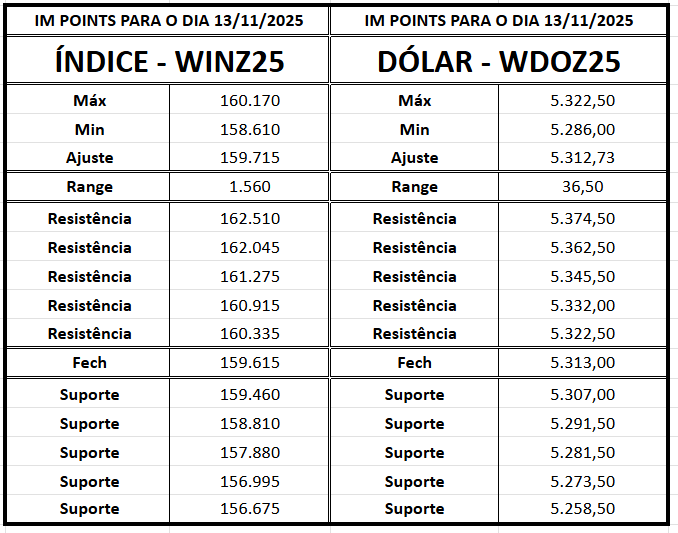 Os contratos de mini-índice (WINZ25), com vencimento em dezembro, encerraram a última sessão em leve baixa de 0,12%, aos 159.615 pontos.