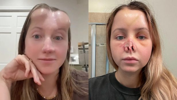 A norte-americana Jordan Wilson, de 29 anos, teve o nariz arrancado por um cachorro há três anos. Após 16 cirurgias, ela voltou às redes sociais para mostrar o resultado da reconstrução de seu rosto — incluindo o novo nariz.