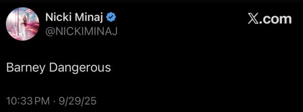 O feito, entretanto, não foi levado a sério pela rival. Um dia após o anúncio, Minaj escreveu “US$ 4,99”, supostamente se referindo ao preço promocional do novo álbum de Cardi no iTunes. Em seguida, ela chamou a rapper de “Barney Perigosa”, ironizando as curvas do corpo de Cardi, em comparativo com o famoso dinossauro roxo.