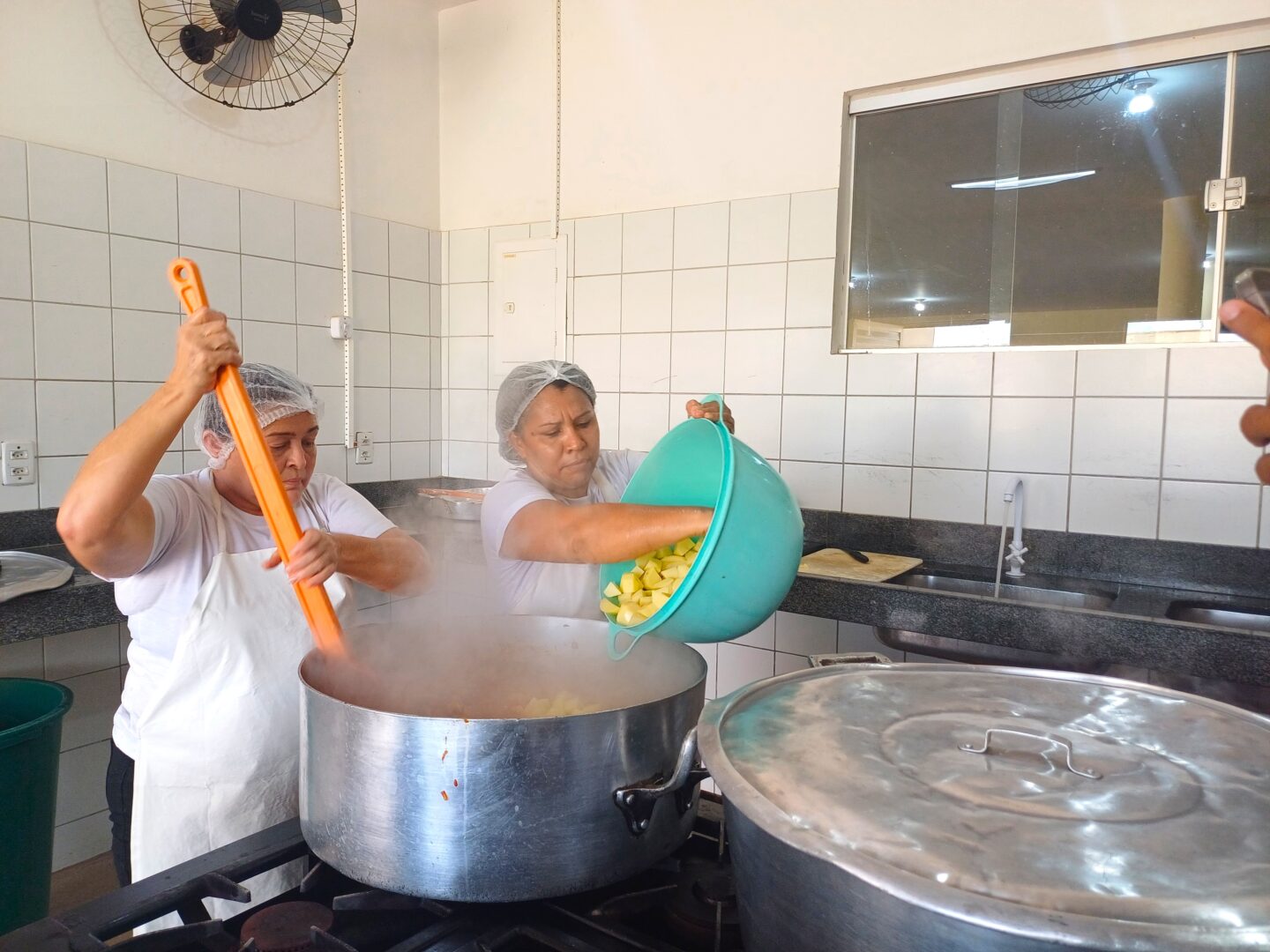 “Hoje servimos arroz com cenoura, frango ao molho e batata. O cardápio muda toda semana: tem carne com verduras, sobremesas com frutas como banana, melancia e abacaxi. Tudo é acompanhado pela equipe de nutrição, que garante que a alimentação seja saudável e variada”, contou.