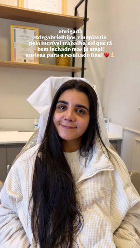 “Sou outra pessoa, eu amei muito. Tô passada”, declarou. Yasmin também agradeceu ao profissional que realizou a cirurgia: “Obrigada, Dr. Gabriel Bijos, pelo incrível trabalho. Sei que ainda tá bem inchado, mas já amei. Ansiosa para ver o resultado final”.