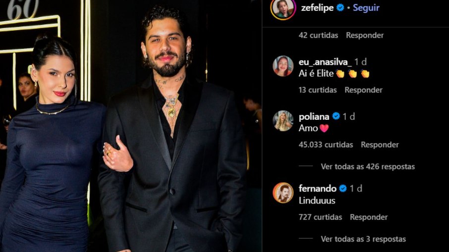 Além do vídeo, o casal compartilhou uma foto posando juntos que também gerou comentários de pessoas próximas ao casal, incluindo Poliana Rocha, mãe de Zé Felipe, que escreveu: “Amo <3”.