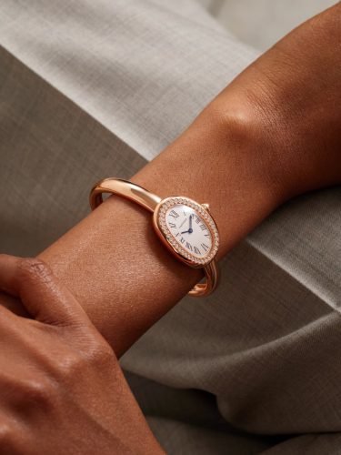 O modelo foi criado em 1958 pela marca francesa Cartier. (Foto: Reprodução/Net-A-Porter)O modelo Ovale Cintré, que surgiu em 1958 e foi oficialmente batizado como Baignoire em 1973, é considerado um dos clássicos da maison francesa e não custa menos de R$ 337 mil. No site da marca, a peça é descrita como um “relógio de assinatura”, marcado pela elegância das linhas e pelo design atemporal.